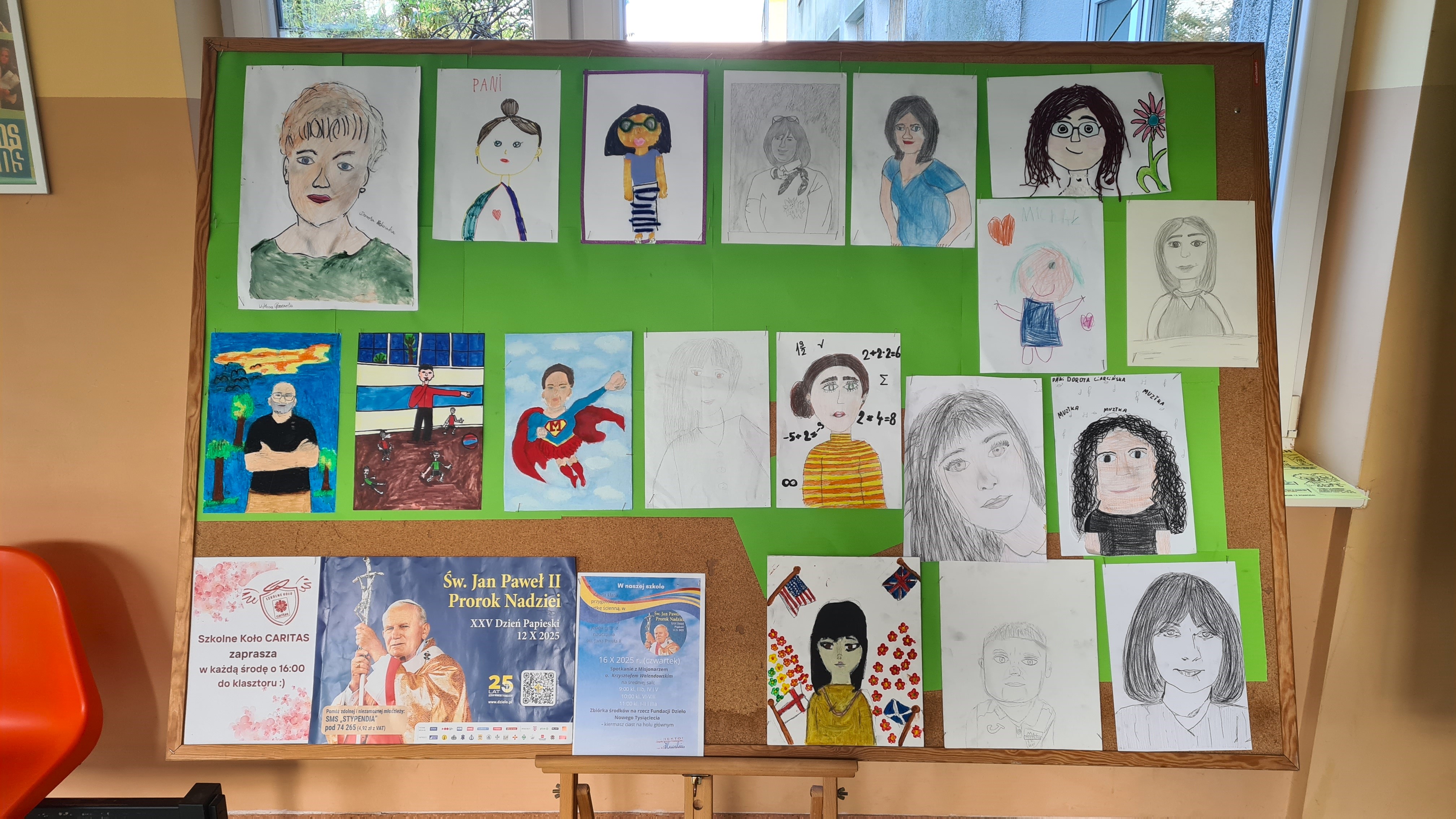 1. Szymon Nowikiewicz kl. 6b (portret p. Małgorzaty Turlej), Zosia Głowacka kl. 4b (portret p. Gabrysi Szorcz)