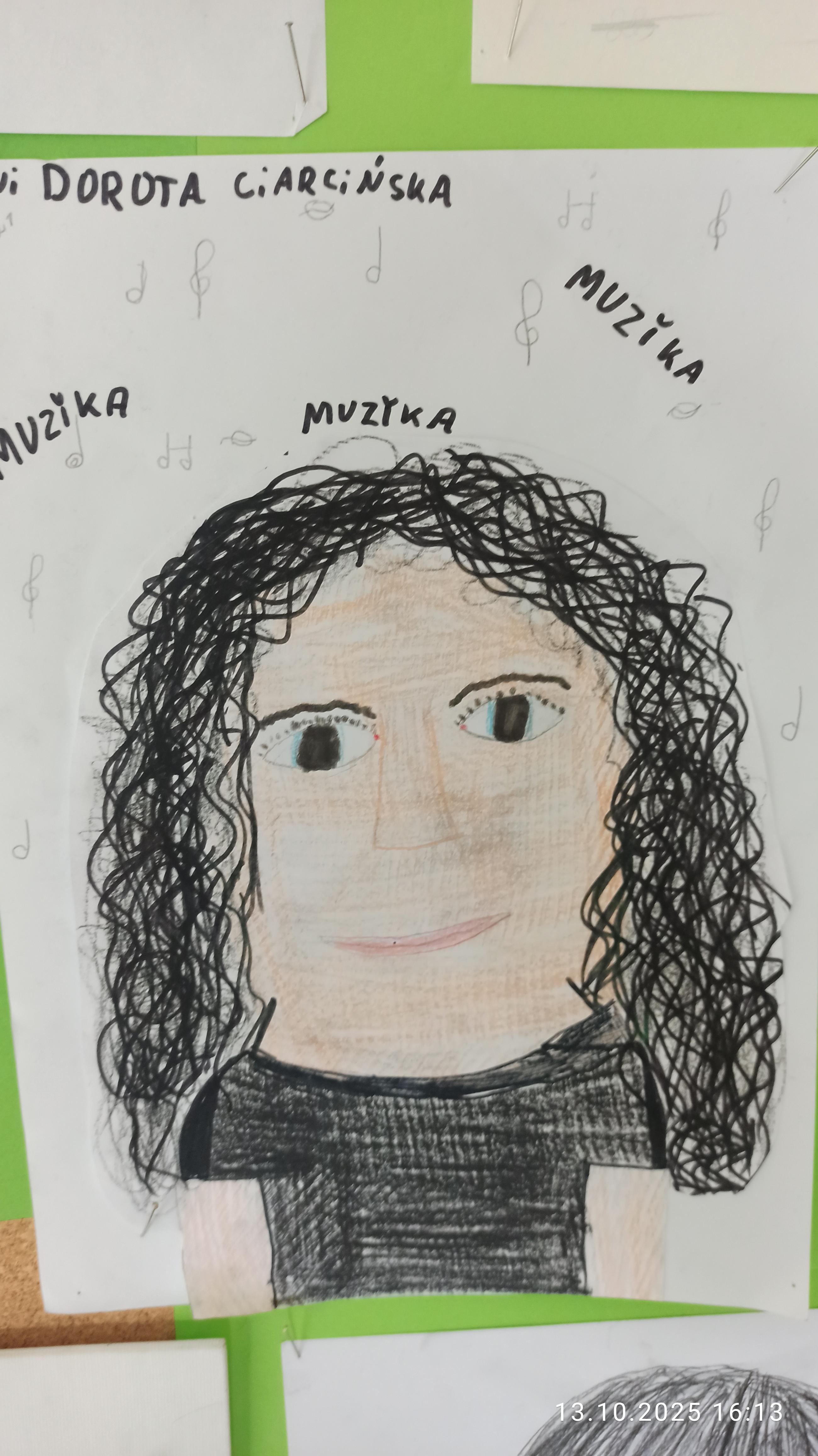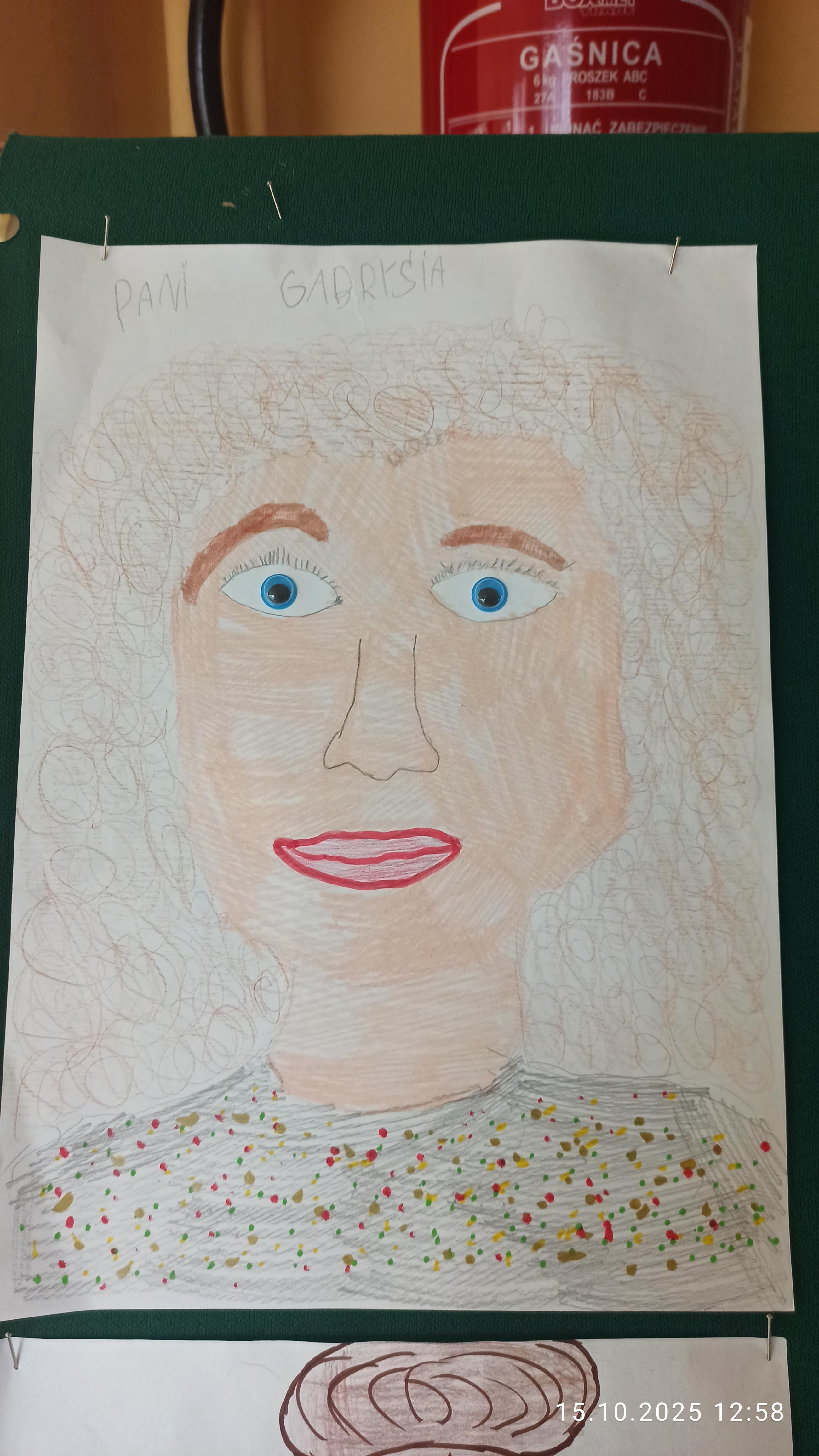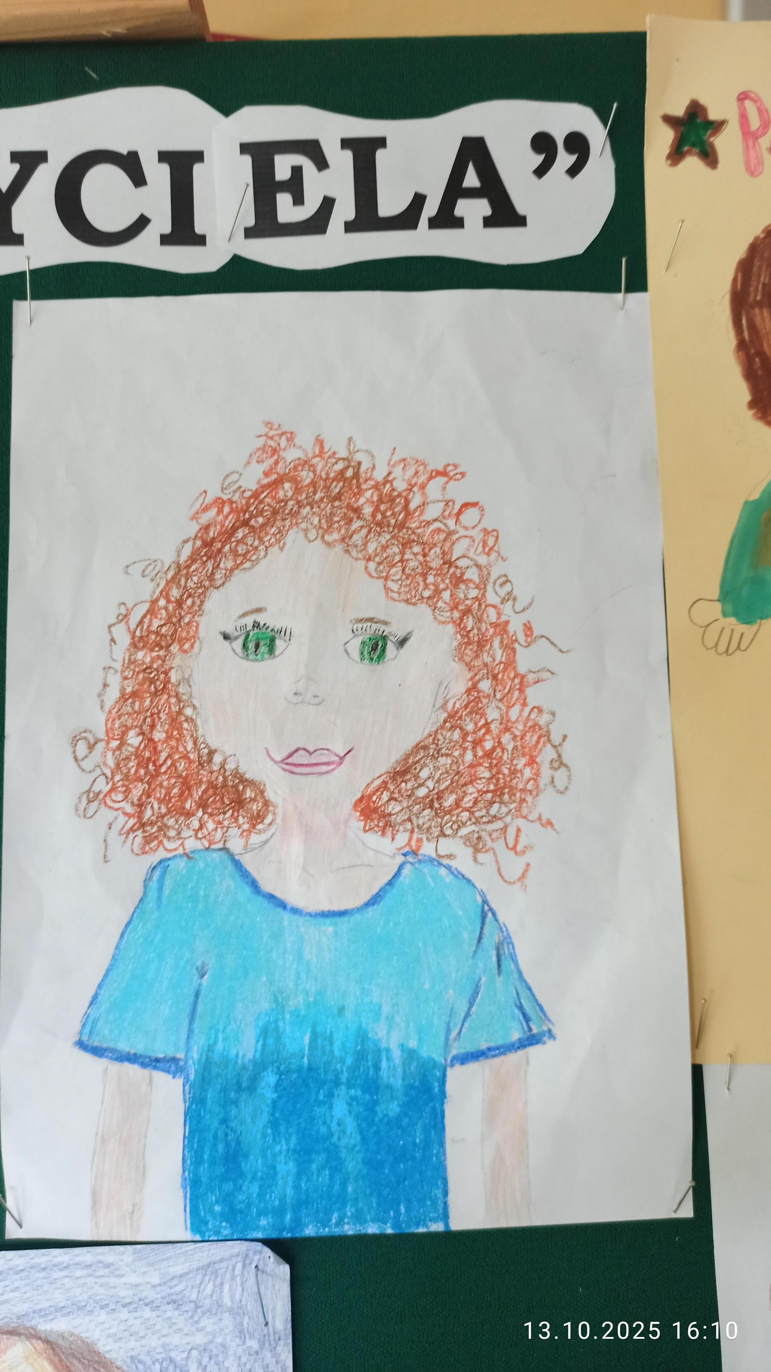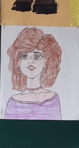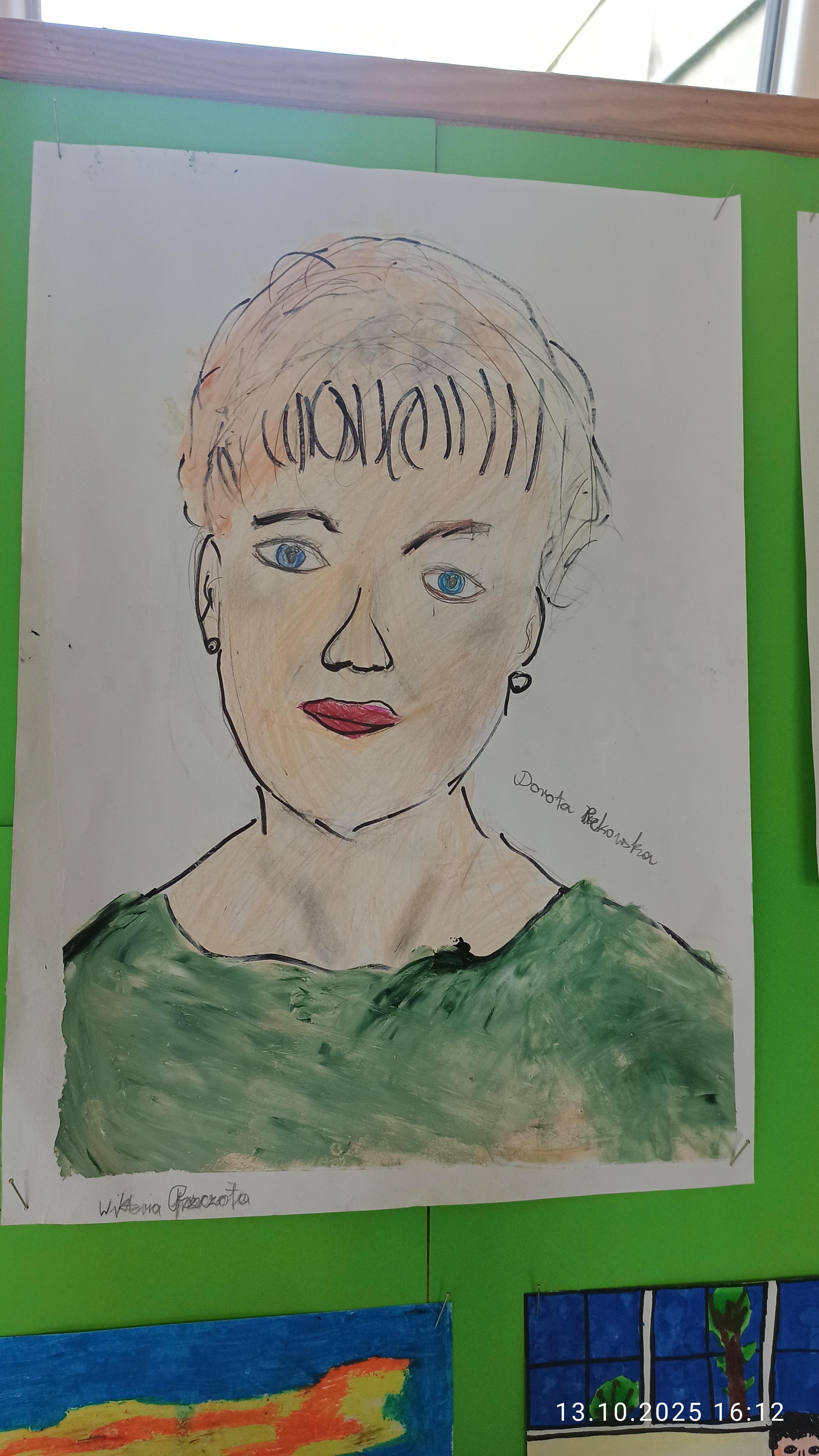 Nagroda pozakonkursowa przyznana przez p. Dyrektor dla Wiktorii Pszczoły kl. 3a (portret p. Doroty Rekowskiej)